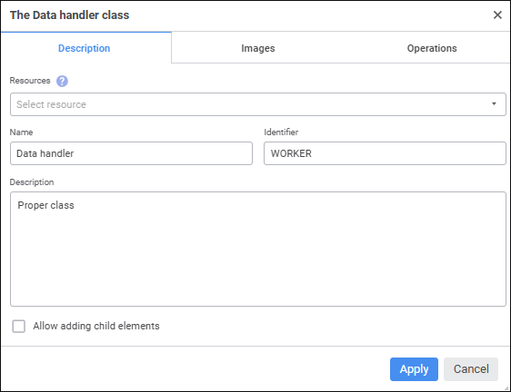 Allow Adding Child Elements. Select the checkbox if custom class objects are supposed to be used as container objects. Any repository objects can be created inside container objects. These objects also contain a proper identifier space.