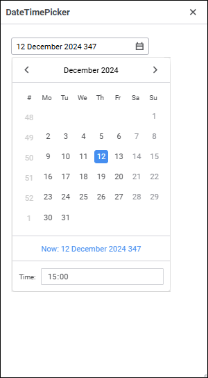 The DateTimePicker component is used to enter and display date and time in a combined calendar.