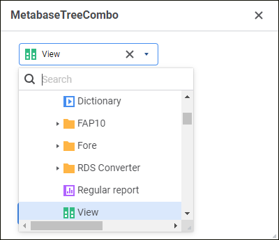 The MetabaseTreeCombo component implements a drop-down list displaying repository object tree.