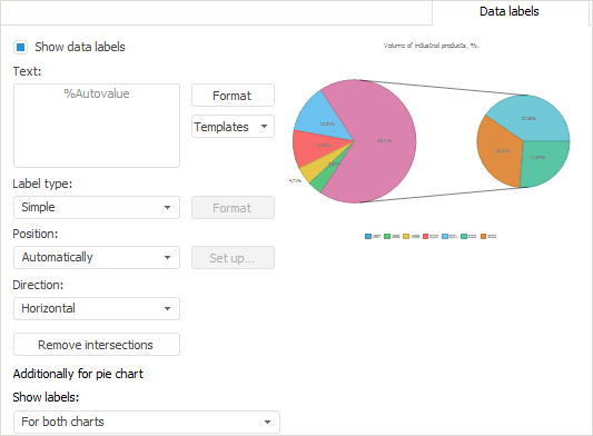 NOTE. Preventing of data labels from intersecting is applied once after clicking the Remove Intersections button. If chart settings are changed, data labels may again intersect with each other. To avoid data label intersection, click the Remove Intersections button again or use automatic data label layout option.