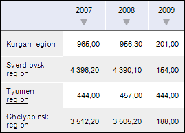 The figure shows a table consisting of four dimension elements. The Tyumen Region element has child elements. This element is displayed as a hyperlink: