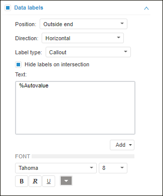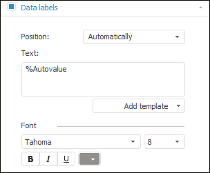 To set up data labels of points in the particular chart data series, use the Data Labels group on the Data Series side panel tab. The Data Labels group looks the same as the Data Labels tab on the side panel.