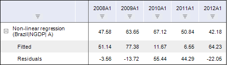 If the formula is set correctly, clicking the OK button closes the expression editor. A calculated series named Non-linear Regression (<Output_series_name>) and containing calculation results is added to the workbook. For example: