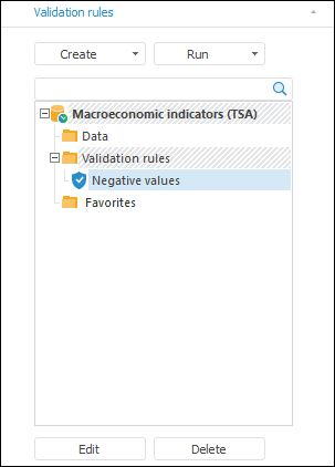 In the time series analysis tool data validation is performed using validation rules. For sequential execution of a number of validation rules they can be combined into a group.