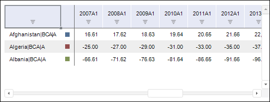 A data table is used to display and work with time series data. Each series has its name, color in a chart and data: