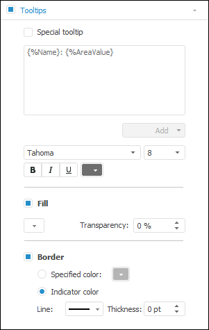 NOTE. This tab is also used to set up tooltips for geolocation markers, pie and column charts.