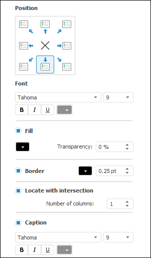 To set up a legend, use the tab in the Format group of tabs on the side panel. Tab name depends on the legend to be set up. The following legend types are available:
