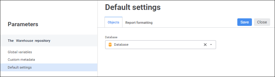 NOTE. One can set repository objects and set up report formatting in the web application default settings.