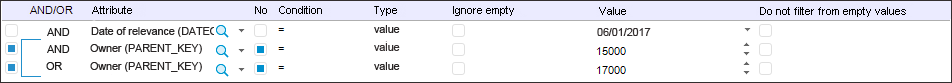 Select one of logical operators using the drop-down list in the AND/OR column: