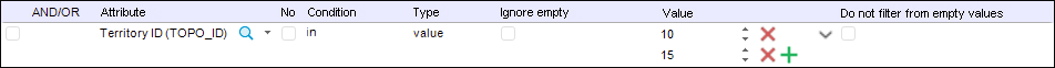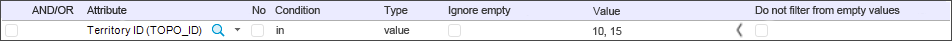 Select the checkbox in the Not column if it is not required to set up the inverse condition. For example, the attribute value is not equal to five.