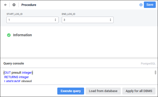 DBMS Command. The page is used to determine settings and specify the SQL query, which is used to make changes in database objects.