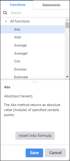 Operands, arithmetic operations, functions, numbers, comparison characters and round brackets can be used in a formula. There are some features of use: