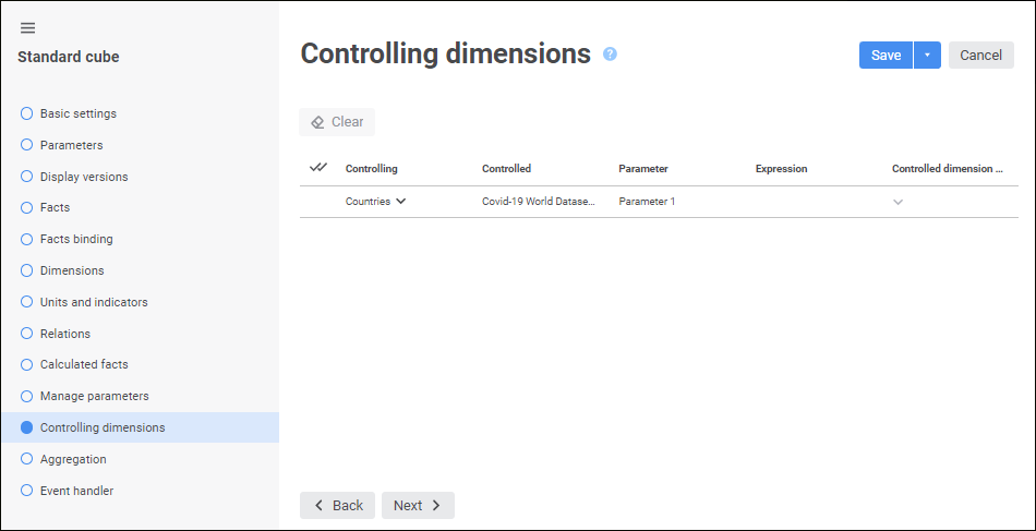 Clicking the Clear button clears controlling dimension and expression for the selected controlled dimension.