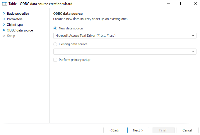 ODBC Data Source. A virtual table based on ODBC data source located outside the repository. Data editing is available if several conditions are satisfied. Deleting of the ODBC Data Source repository object does not affect the data source located outside the repository: