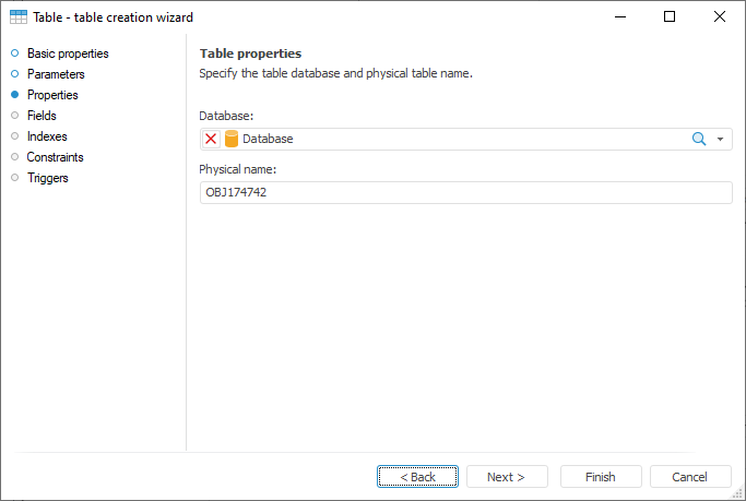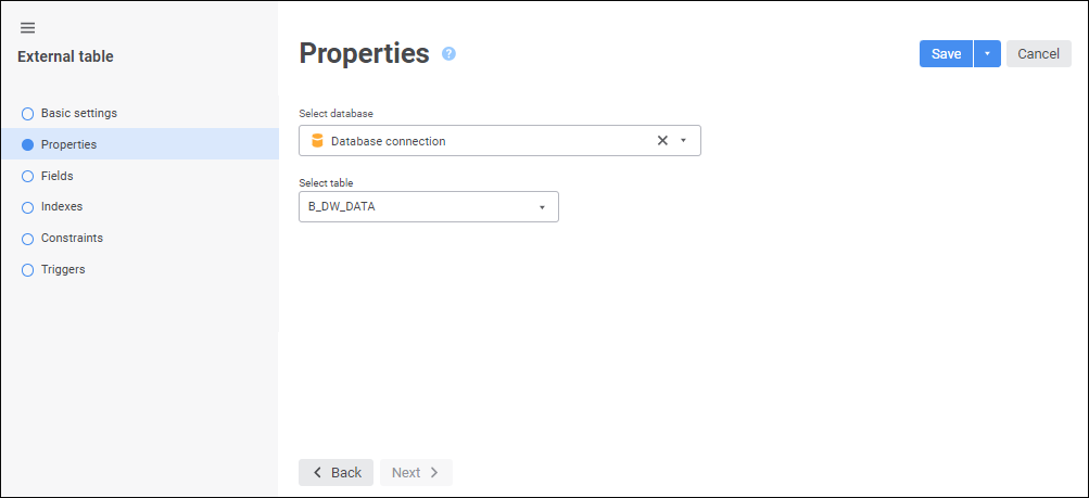 Table. Physical table in the database. A set of table fields is determined by the user. To create a data structure from scratch, one uses the fields added manually or automatically based on the existing table. Data in the table can be entered by the user or loaded from the external sources by means of built-in ETL tools: