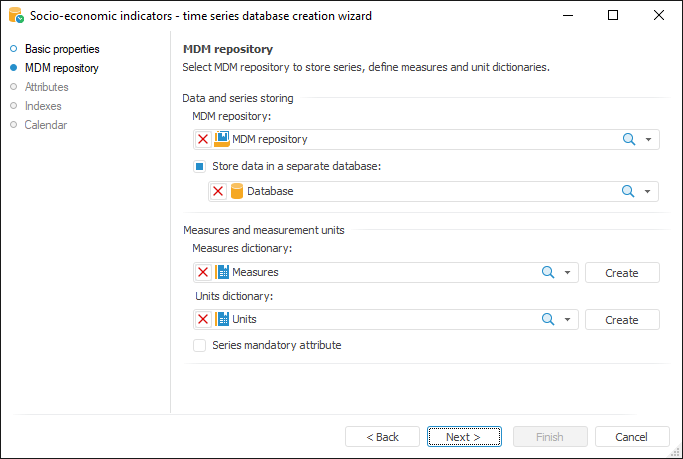 TIP. The specified MDM repository and a separate database that is used to store time series can be located on different DBMS servers. It is important that the DBMS servers in use will be of the same type, for example, only Oracle or only Microsoft SQL Server.