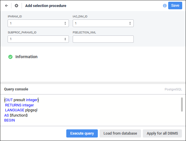 Procedure/Function. The page is used to set up the procedure, determine its type and executed script.