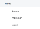 Before element version is enabled, the MDM dictionary displays names of the countries before and after renaming: