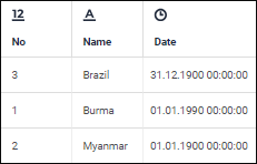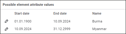 Consider setting of element's actual period in the example of an MDM dictionary, to which table data is imported (names of countries and dates, when their names were changed):