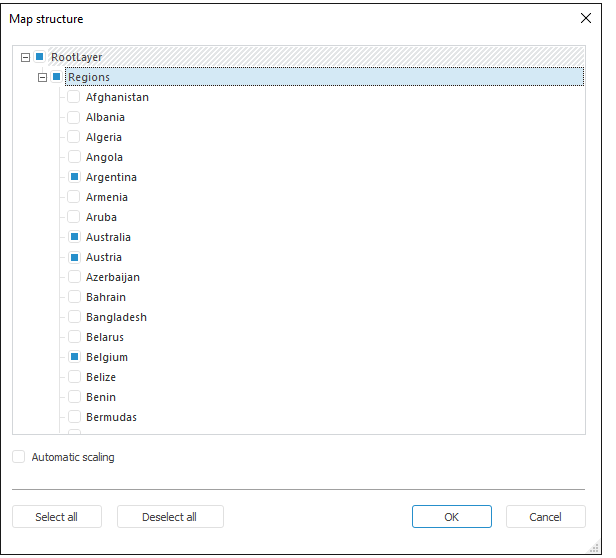 To change map structure, select the Change Map Structure item in the map's context menu. The Map Structure dialog box opens: