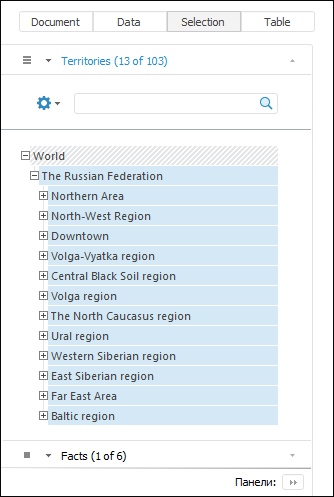 To work with data source dimensions, use the Selection group of tabs on the side panel.