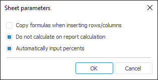 Do not Calculate on Report Calculation. If the checkbox is selected, the selected sheet is not calculated on report calculation.