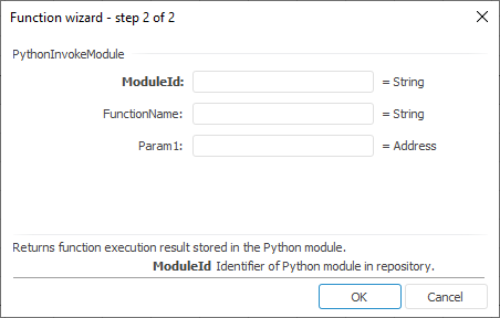 PythonInvokeModule(ModuleId, FunctionName, Param,…)