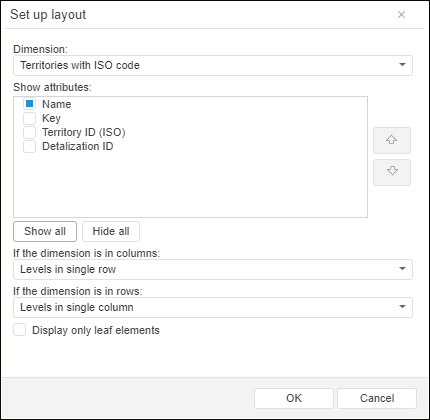 2. Select the Set Up Layout item in the drop-down menu of the Names item located in the dimension's context menu in table heading or sidehead. The Layout Settings dialog box opens.