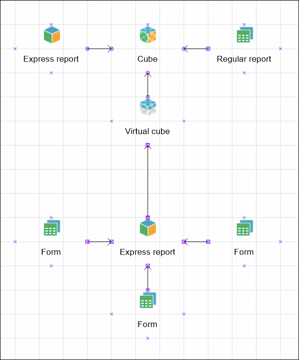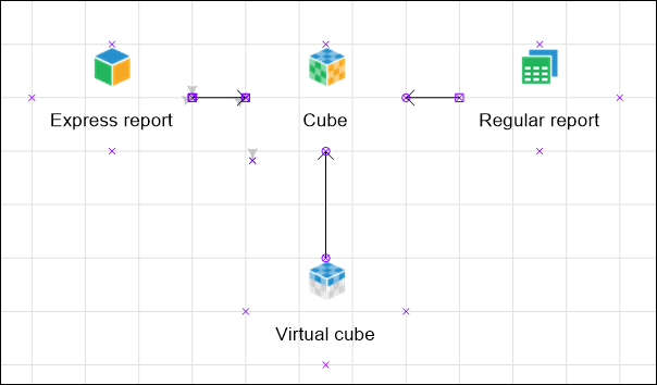 For example, the Cube object is included in the express report, regular report and virtual cube: