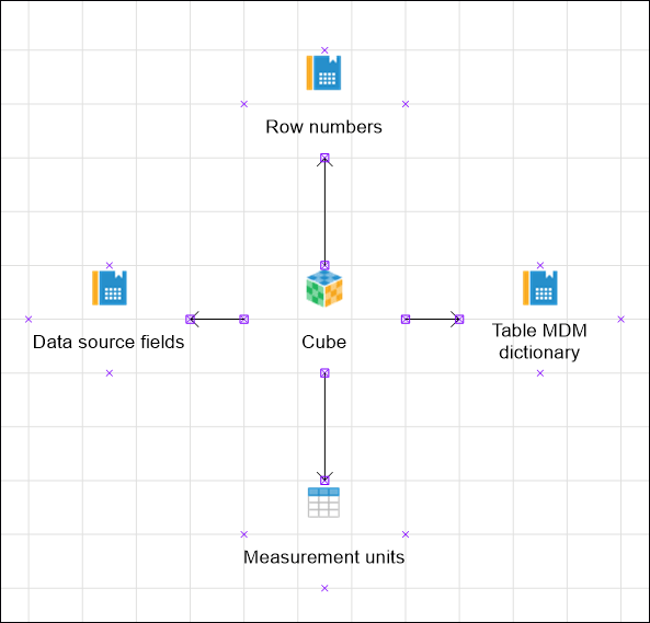 For example, the Cube object consists of the table and dictionaries. The Table Dictionary dictionary consists of the Territories table and the Measurement Units and Territories tables consist of the Data database: