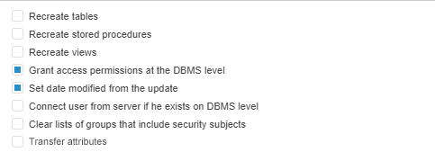 Connect User from Server if He Exists on DBMS Level. Select the checkbox if the update contains: