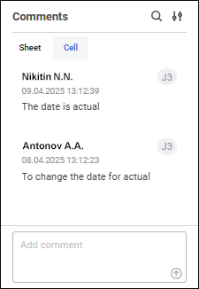 Adding comments is available for table cells built on the same cube. The added comments will be available for all tables, which contain cells with the ability to add comments.