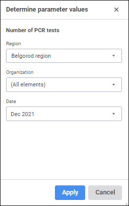 Enter or select (depending on parameter type) values for other parameters and click the Apply button.