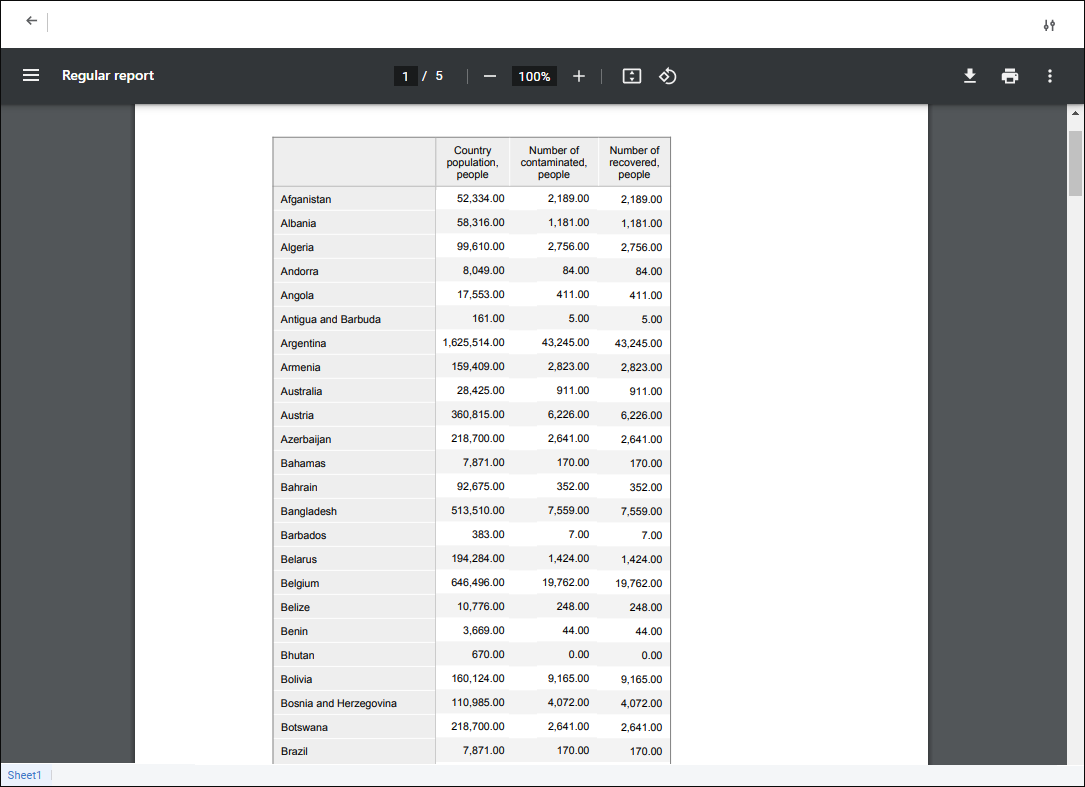 Select the required tab with sheet name to print a single report sheet. To print the entire report, go to the Report tab.
