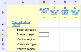 Executing the example requires that the HTML page contains the ExpressBox component named expressBox (see Example of Creating the ExpressBox Component) and have a loaded table in express report working area. Calendar dimension of the report must be hierarchical. Drill one level up the hierarchy of this dimension: