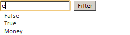 After executing the example the string list, the field for text entering and the filter button are located on the HTML page. Enter text in the input box, click the Filter button. Elements that contain the entered text are given in the list: