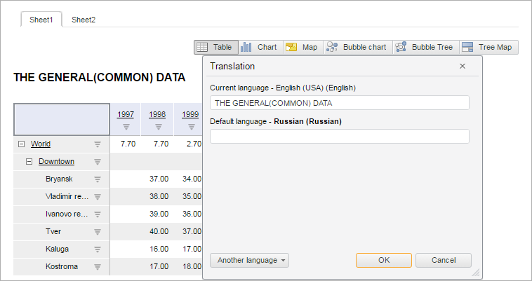 To execute the example, the HTML page must contain the ExpressBox component named expressBox (see Example of Creating the ExpressBox Component). To show the title, click the Title button on the Home tab. Display a dialog box for title text translation:
