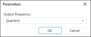 Specify the output frequency of the calculated series in the Output Frequency drop-down list. The only available frequencies are those, which are greater than frequencies of the series, for which the method is applied. For example, if aggregation is calculated only for a series with quarterly frequency, the Output Frequency drop-down list will contain the Annual and Semi-Annual options.