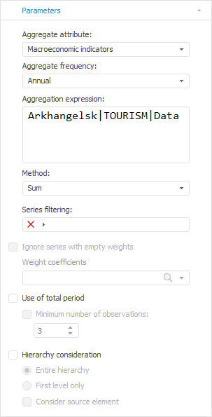 Parameters on the tab correspond to the parameters of the Aggregation dialog box, which opens upon creating a calculated series.