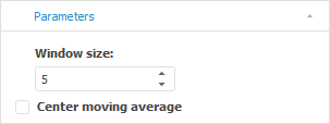 Window Size. Time interval, in which the average element value is calculated. The greater is the window width, the smoother is the series. The window size is 5 by default.