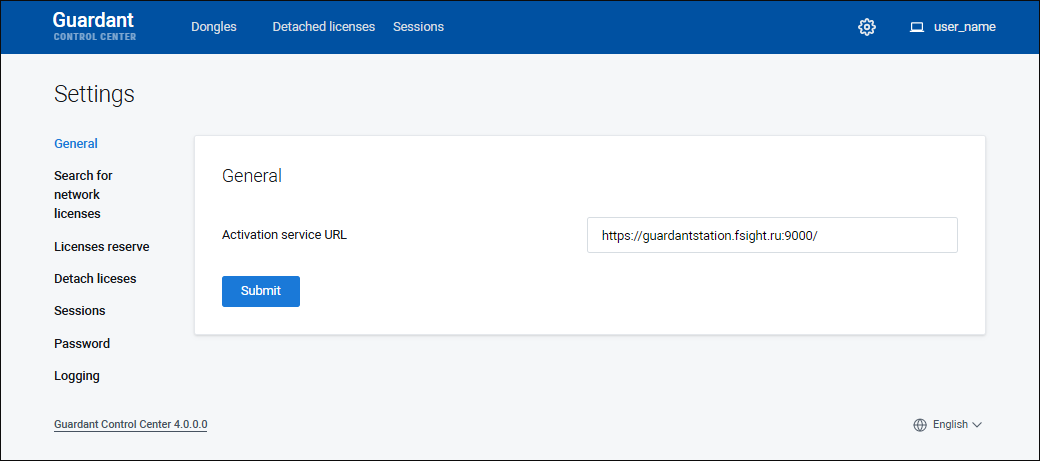 NOTE. To get Guardant Control Center distribution file for Linux/Windows OS, contact technical support by sending a request to support@fsight.ru or technical support services, which are available after registration at the website.