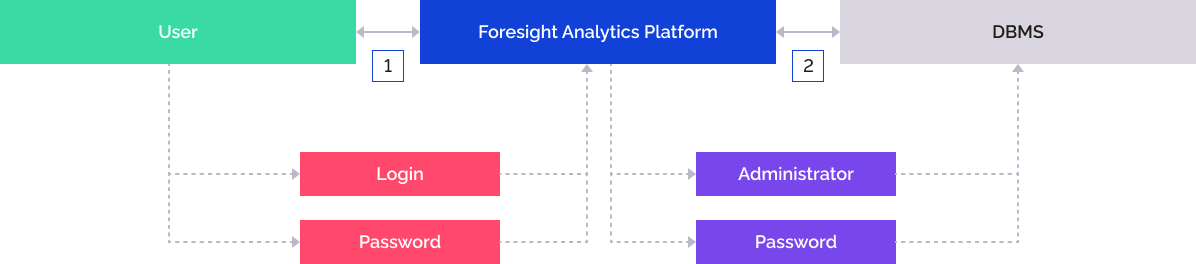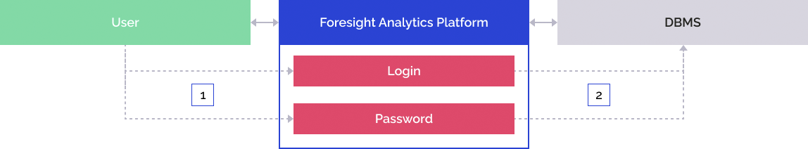 Foresight Analytics Platform addresses DBMS by means of the given user name and password.