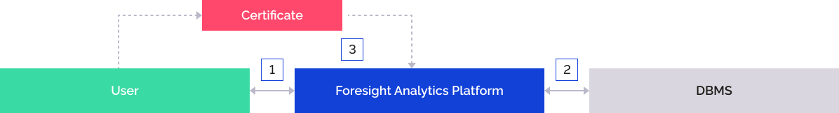 The user grants Foresight Analytics Platform the certificate after executing a query and gets access to repository if the certificates match.