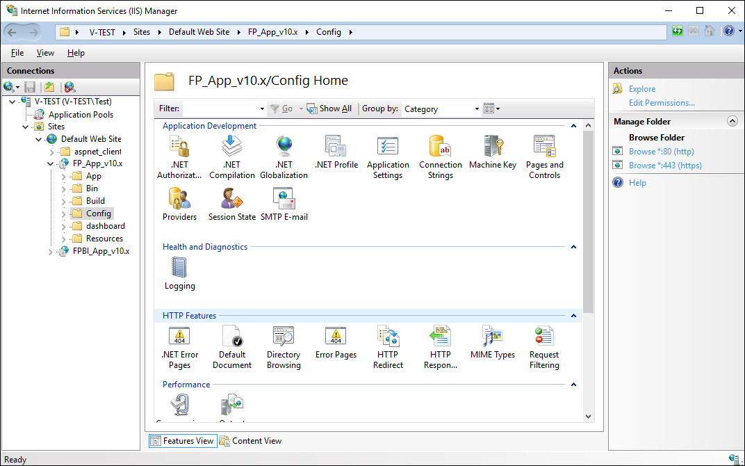 Double-click to expand the FP_App_v10.x virtual folder in the Connections tree and select the Config folder: