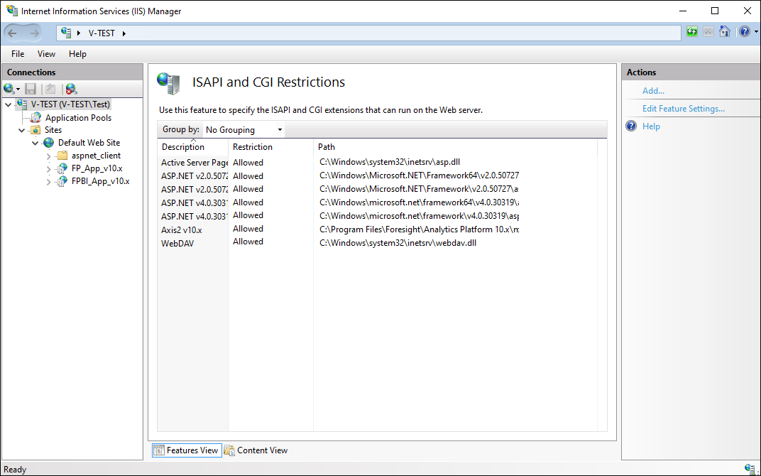 Restart the web server using the Restart item on the Actions panel: