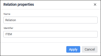 Identifier. Enter unique identifier of the relation. The default identifier is ITEM.