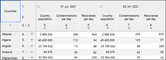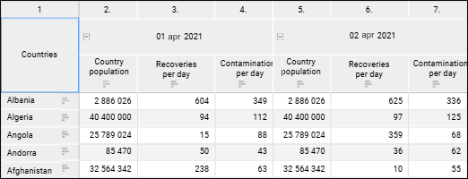 Numbering of rows and columns can be enabled and set up for a table. To enable and set up numbering, use the Layout group of parameters on the settings panel.