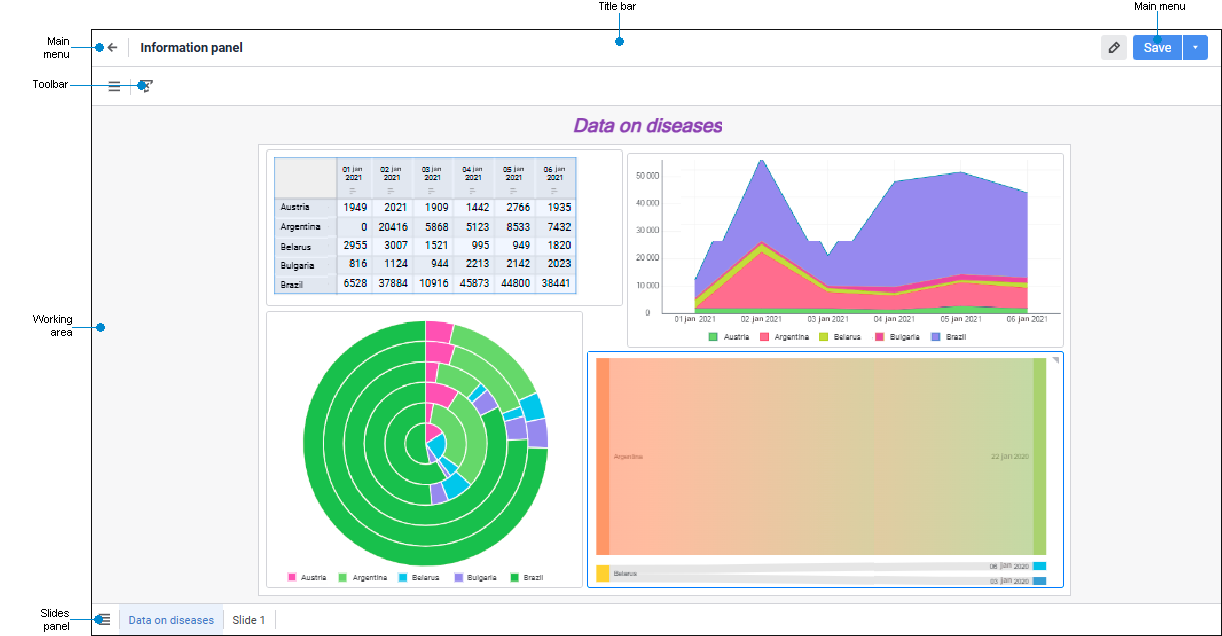 To get started with the tool, create a new or open the ready information panel.