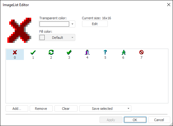 Fill color and transparent color can be set for each of the images. To do this, use respective drop-down lists for color selection. These colors will be used to form final version of images displayed in the components.