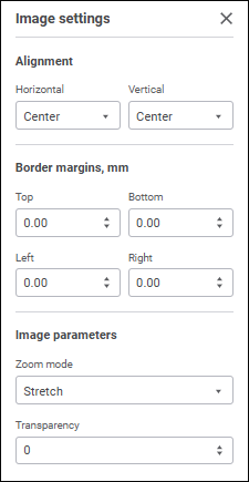 Select the Set Up Image item in the image's context menu. The Image Settings panel opens.